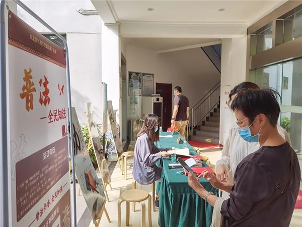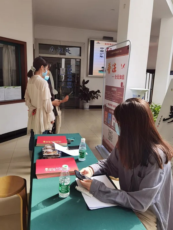 9月18日,江北新区图书馆的法律咨询广场准时上线,在图书馆一楼门厅内,江苏衡鼎律师事务所的周律师守候在现场,解答市民的法律咨询。前来助阵的还有超星移动图书馆,她们带来的普法图书可以免费下载。