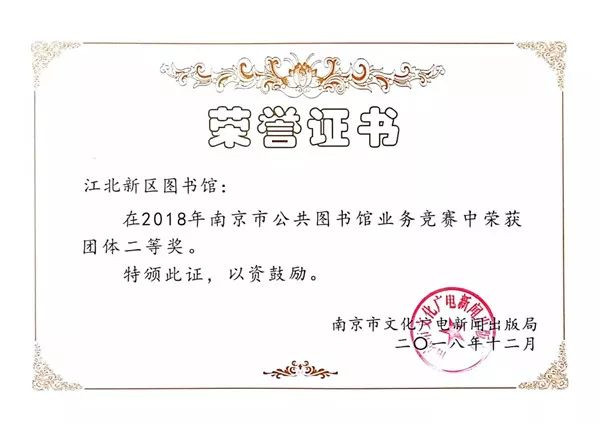 ▲在2018年南京市公共图书馆业务竞赛中荣获团体二等奖